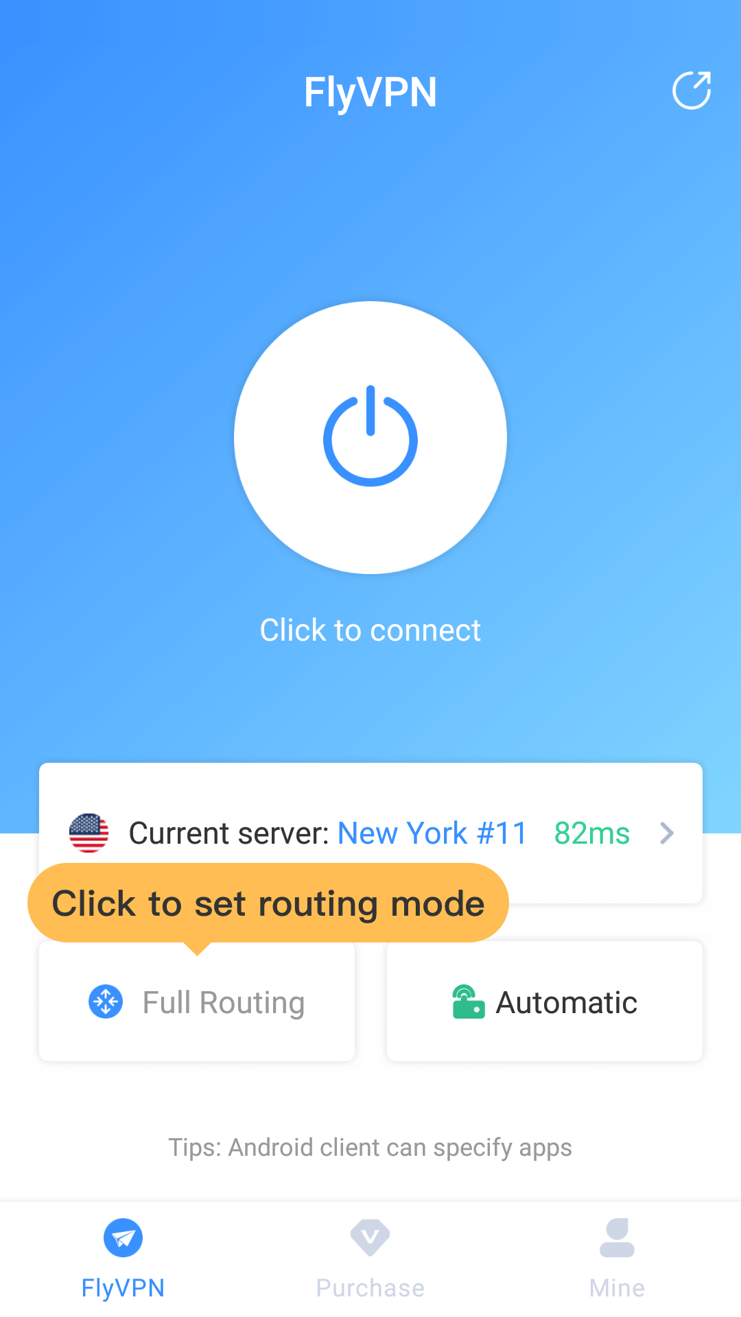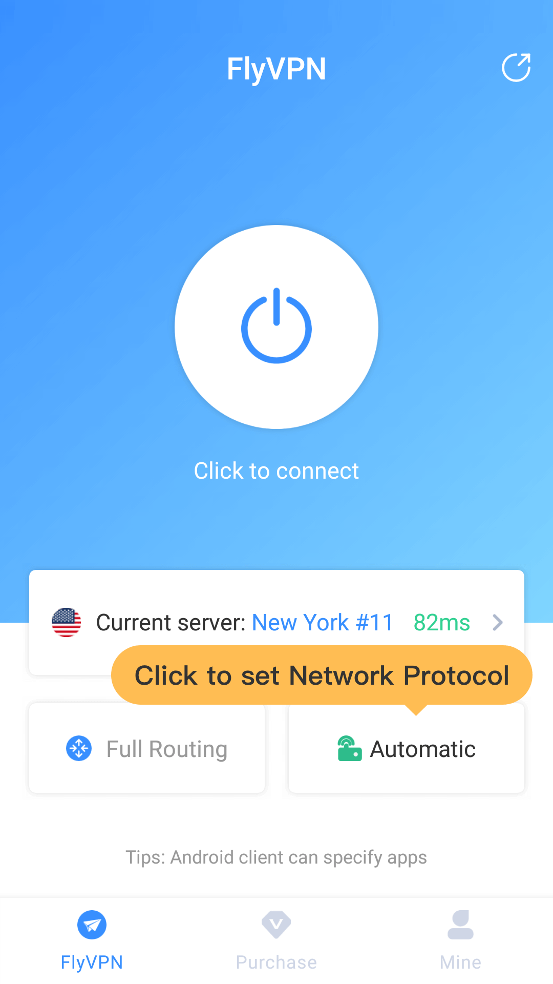 1. Open FlyVPN, register with your email and log in to FlyVPN.