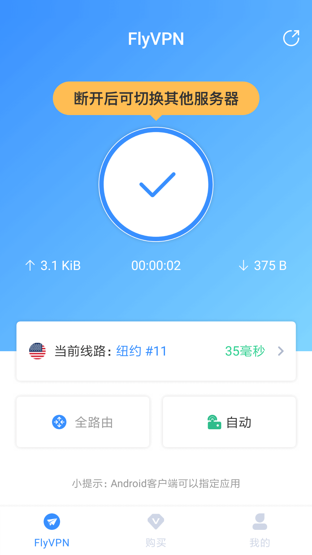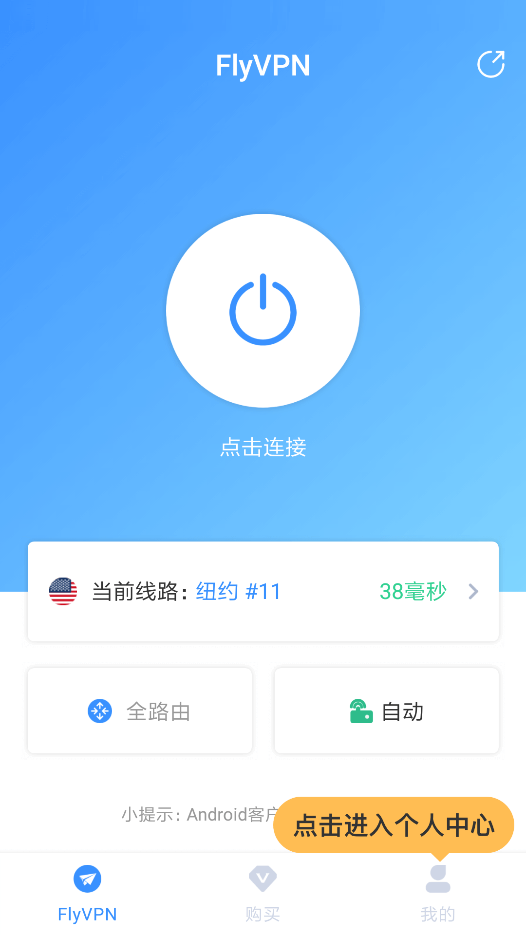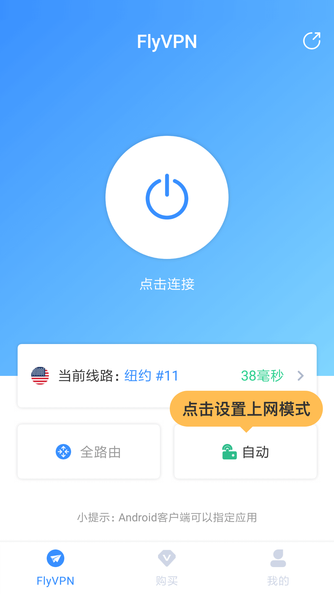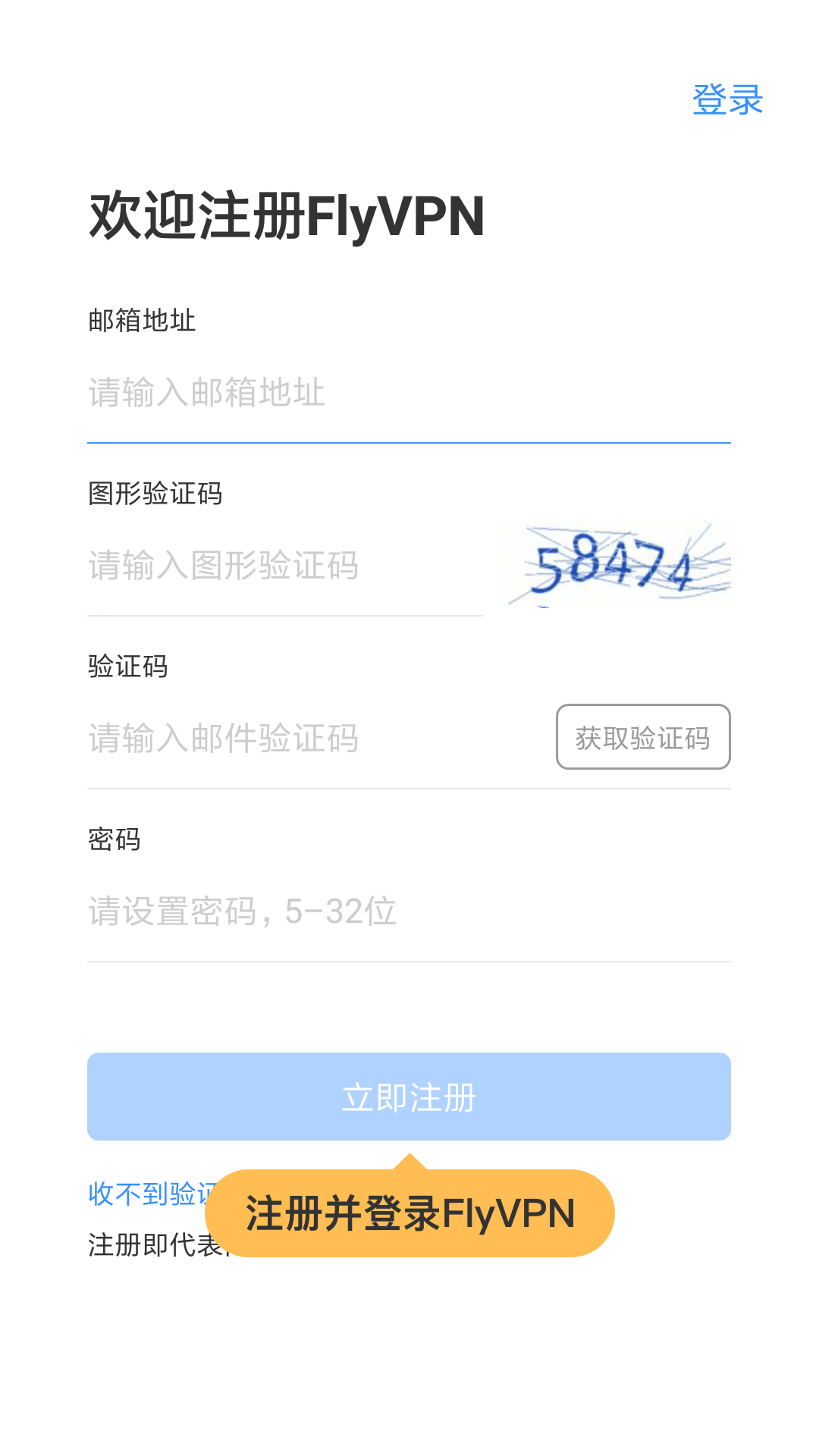 1. 打开FlyVPN,使用邮箱注册并登录FlyVPN。