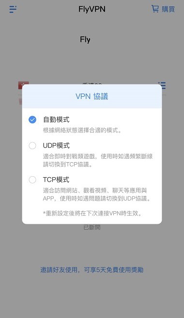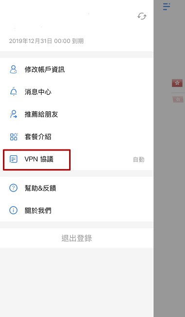 5.其他:頁面“VPN協議”模塊可設置VPN連接模式。模塊還包含修改賬號信息、幫助&反饋等功能,您可以根據需要點擊使用。